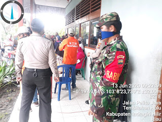 SERIBUPARITNEWS.COM,TEMBILAHANHULU - Babinsa Koramil 01 Tembilahan dipimpin Pjs.Danramil 01 Tembilahan yang diwakili Sertu Simbolon melaksanakan Pendampingan Penyaluran Bansos BST Tahap II dibeberapa Titik Lokasi di Wilayah Kecamatan Tembilahan Hulu Sabtu (14/06/2020)