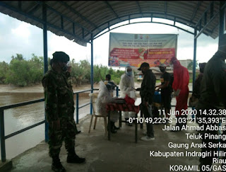 SERIBUPARITNEWS.COM,GAUNG ANAK SERKA - Personil Koramil 05/Gaung Anak Serka melaksanakan Penegakkan Disiplin Protokol Kesehatan di Pelabuhan Teluk Pinang Kamis (11/06/2020)