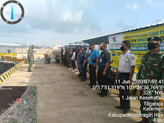 Selepas Apel Tim terpadu langsung melaksanakan pengecekan suhu, sosialiasi dan sweeping penggunaan masker di Pelabuhan Syahbandar/ HK Sungai Guntung kelurahan Tagaraja kepada para penumpang.