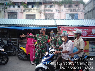 *Personil Koramil 06 Kateman Sidak Pengguna Masker Di Pasar Pagi Sungai Guntung,Kec.Kateman*