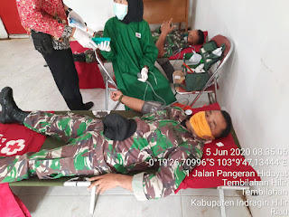 SERIBUPARITNEWS.COM, KATEMAN - Babinsa Koramil 06/Kateman Serda Edili Zalukhu melaksanakan Donor darah dalam rangka HUT Kodam 1 Bukit Barisan Ke -70 Jumat (05/06/2020)