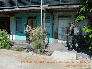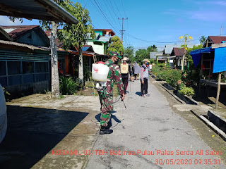SERIBUPARITNEWS.COM, TEMBILAHANHULU - Babinsa Pulau Palas Serda Ali Sabri tetap menjaga Protokol penanganan Covid -19 Sabtu (30/05/2020)