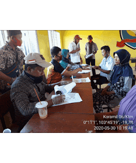 SERIBUPARITNEWS.COM, KATEMAN -Babinsa Sungai Simbar Serda E.Zalukhu melaksanakan kegiatan pengamanan pembagian BST kepada masyarakat yang terdampak dari covid 19 untuk bulan April Sabtu (30/05/2020).