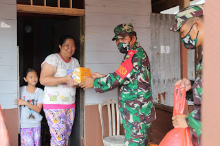 Secara door to door, anggota Kodim 0314/Inhil bersama Babinsa Koramil 01/Tembilahan dengan dipimpin Pasi Log Kodim 0314/Inhil Kapten Inf Riswanto menyasar pembagian untuk masyarakat di lingkungan lorong Harapan dan lorong Sederhana, Jalan Keritang, Tembilahan.