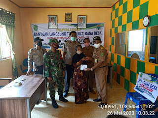 SERIBUPARITNEWS.COM, MANDAH, Pjs.Danramil 08 Mandah yang diwakili Babinsa Igal Serka H.Situmorang melaksanakan Pendampingan Kepada Camat dalam Penyaluran BLT di Desa Bolak Raya Selasa (26/05/2020)