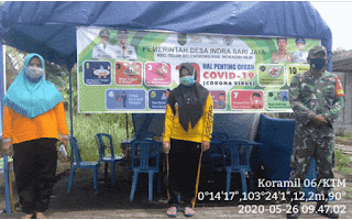 Dengan dibantu dua orang tim relawan yang dipimpin Ibu Ari Setianingsih Sertu Pujiantoro Melakukan pengecekan terhadap warga yang datang dan pergi dari Desa Indrasari