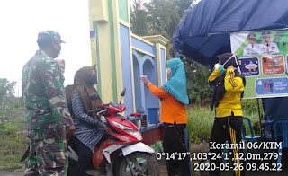 SERIBUPARITNEWS.COM, KATEMAN - Babinsa Indra Sari Jaya Kecamatan Teluk Belengkong Koramil 06/Kateman Sertu Pujiantoro seusai lebaran tetap melaksanakan pengamanan di Posko Pendataan warga Selasa (26/05/2020).