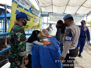 Mewakil Danramil 06/Kateman Pelda Samsuir Bahwa pada hari ini Babinsanya Melaksanakan pengecekan Pengamanan Operasi lancang kuning terhadap penumpang di Pelabuhan Laskar Melayu guna pencegahan dan pengawasan terhadap penyebaran virus covid -19.