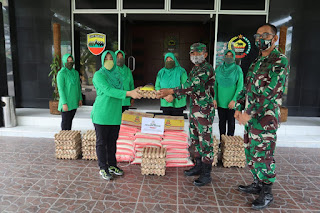 Ketua Persit menyebutkan, sembako ini nantinya akan disalurkan kepada masyarakat melalui Babinsa.