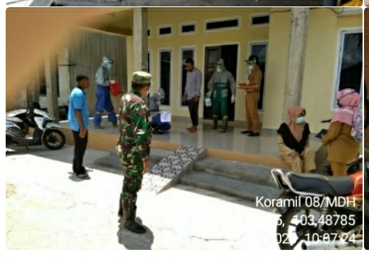 SERIBUPARITNEWS.COM ,MANDAH - Babinsa Bekawan Serda H.Mony  hari ini membantu Tim Relawan Kesehatan Penanganan Covid - 19 Kamis (30/04/2020)