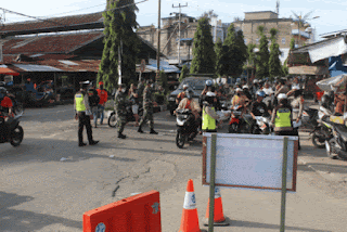 "Hari ini sudah kami peringatkan dan kami berikan masker untuk masyarakat dan pedagang, apabila besok tidak mengindahkan himbauan kami, maka yang tidak menggunakan masker silahkan putar balik, dan bagi para pedagang yang tidak mengenakan masker, silahkan untuk menutup jualannya," tegas Pasi Ops.