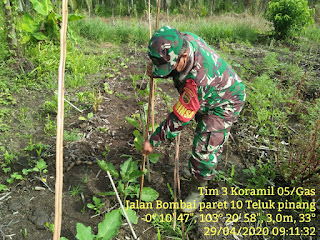 Babinsa Koramil 05/Gas Serdan Danu Kiswoyo ungkapkan, Koramil 05/Gas mendotong/memotivasi masyarakat agar memanfaatkan pekarangan rumah untuk menanam tanaman pangan. Penanaman ini sebagai upaya persiapan cadangan pangan dalam rangka antipasif dampak wabah Corona atau covid 19.
