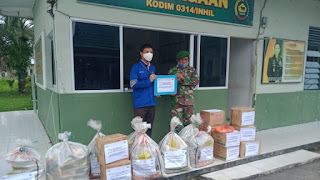 Penyerahan bantuan berupa sembako ini diserahkan langsung oleh manajer PT.FJB Services PLTU Tembilahan Feriadi dan diterima langsung oleh Pasi Ops Kodim 0314/Inhil Kapten Inf Tarmizi mewakili Dandim 0314/Inhil Letkol Inf Imir Faishal di depan pos penjagaan Makodim 0314/Inhil, Jalan Ahmad Yani, Tembilahan, Kamis (23/04/2020).