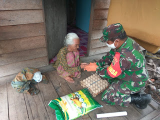 Salah satu wujud kepedulian terhadap kaum duafa Koramil 05/Gas bagi bagi sembako buat warga yang kurang beruntung, Kamis,23/04/2020 pagi tadi.