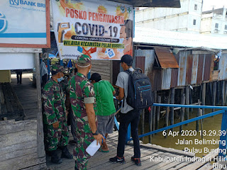 SERIBUPARITNEWS.COM PULAUBURUNG - Personil Koramil 11 Pulau Burung melaksanakan pengecekan tentang COVID-19 di pelabuhan Kosong Kosong bagi warga pendatang ke wilayah Kec Pulau Burung Senin (06/04/2020)