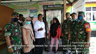 SERIBUPARITNEWS.COM,MANDAH - Danramil Mandah Pelda Suryadi mendampingi Tim Gugus Tugas Kecamatan Mandah Menerima Bantuan Bilik Pencegahan Covid -19 Minggu (05/04/2020)