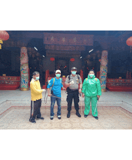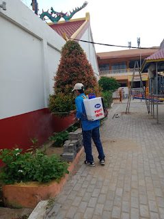 Bersama Kapolsek Tembilahan Hulu AKP Rhino Handoyo, SH,Bhabinkamtibmas, dan Staf kelurahan, Edi,SH langsung mengeksekusi titik titik tempat yang harus disemprotkan desinfektan.