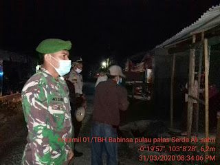 SERIBUPARITNEWS.COM,TEMBILAHANHULU - Babinsa Pulau Palas  Koramil 01 Tembilahan tetap konsisten mengadakan patroli Himbauan terkait Covid -29 malam tadi Selasa (31/03/2020).