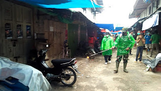 Koramil 05/Gas, Polsek Gas, tokoh masyarakat dan tokoh pemuda RT/RW, Staf Kelurahan, Pramuka, Puskesmas, serta relawan melaksanakan penyemprotan cairan disinfektan pencegahan penyebaran virus Corona atau covid 19 di Kelurahan Teluk Pinang,Selasa pagi (31/03/2020)