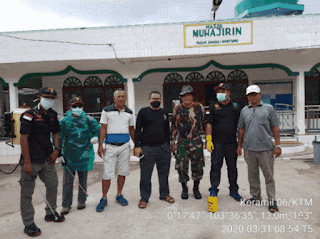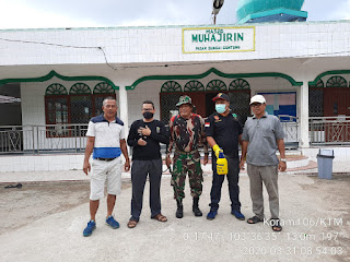 Danramil 06 Kateman dan Personilnya Lakukan Penyemprotan desinfektan