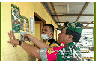 SERIBUPARITNEWS.COM, MANDAH - Babinsa Bekawan Koramil 08 Mandah Sertu Yanuarsyah Melaksanakan Pemasangan Brosur Kodim tentang  sosialisasi Pencegahan Covid - 29 Senin (30/03/2020).