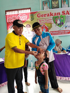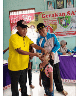 Selesai acara pembukaan dilanjutkan kegiatan pemberian vitamin A kepada Balita dan anak secara simbolis oleh Lurah Sungai Empat