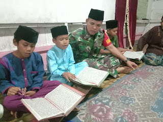 Selepas Magrib Babinsa Bakau Aceh Mengajarkan anak anak mengaji