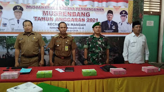 Dalam sambutannya Pjs.Danramil 08 Mandah Pelda Suriadi berharap hasil Musrenbang ini dapat diakomodir di Musrenbang Kabupaten dan dapat terlaksana harapnya.