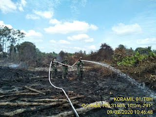 Ketiga Personil Koramil 01 Tembilahan ini membantu personil 12 Batang Tuaka dimulai tepat jam 08.00 wib, menyisir titik api yang masih menyala menggunakan mesin pump.sebelumnya telah dilakukan pemadaman oleh Koramil 12 Batang Tuaka. Tapi untuk memastikan titik api tersebut sudah padam atau belum perlu kita sisir lagi tegas Serda Jondri.