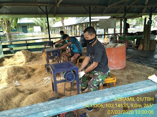 SERIBUPARITNEWS.COM TEMBILAHANHULU - untuk mengisi kekosongan waktu di sela sela tugas sebagai pembina Teritorial di wilayah Kelurahan Tembilahan Hulu. Serda Jondoli bersama personil kodim 0314 Inhil melakukan Pengolahan serabut kelapa di Makodim 0314 Inhil Jumat (07/02/2020).