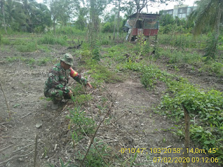 Di tengah kesibukannya dalam melaksanakan tugasnya selaku Babinsa Kel. Teluk pinang, Serda Danu Kiswoyo menyempatkan diri merawat tanaman di Demplot tanaman jahe di Demplot Karya Nyata yang lokasinya di Parit no.10 Kel. Teluk pinang.