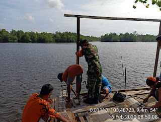 SERIBUPARITNEWS.COM MANDAH- Babinsa Igal Koramil 08/Mandah Serka H.Situmorang bersama warga  berduyun duyun melaksanakan gotong royong membuat Jerambah Dermaga Penyeberangan kapal dimulai Pukul 08.00 wib Kamis (06/02/2020).