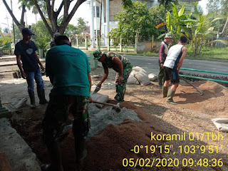 SERIBUPARITNEWS.COM TEMBILAHAN-Sebagai wujud pengabdian Koramil 01 Tembilahan kepada masyarakat dalam bentuk pelayanan tentunya perlu didukung sarana dan prasarana yang memadai. Dikarenakan hal tersebut Koramil 01 Tembilahan dipimpin langsung oleh Pjs.Danramil 01 Tembilahan Kapten Inf. Tarmizi beserta Anggota Koramil 01 Tembilahan melaksanakan Gotong royong pembenahan sarana pelayanan tersebut Rabu (05/02/2020)
