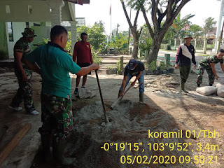 Kegiatan dimulai Pukul 07.00 wib berupa pengecoran halaman Koramil 01 Tembilahan. Anggota Koramil 01 Tembilahan mulai mengaduk Semen dan mencampurkan dengan pasir dan menuangkannya pada lantai yang akan dicor
