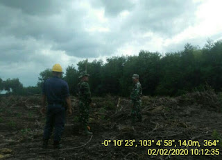 Anggota Koramil 05/Gas Serka Sasmito dan Serka Nawawi melaksanakan Mitigasi bersama security PT. MSK di parit Karya Tani Simpang Kanan Desa Teluk Kabung Kec. Gaung, 02/02/2020.