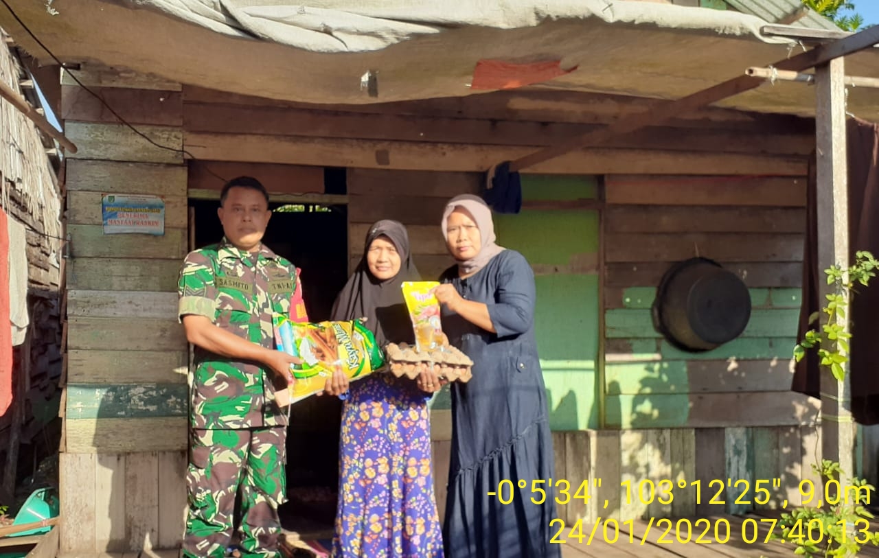 Sebagai wujud kepedulian kepada warga yang kurang beruntung Babinsa Koramil 05/Gas Serka Sasmito memberikan sebagian rezekinya kepada : Ibu Hayati warga Dusun Sempurna RT.02 RW.06 dan Ibu Misa warga Jalan Bandes lorong swadaya RT. 04 RW. 07 keduanya di Desa Belantaraya Kec. Gaung.
