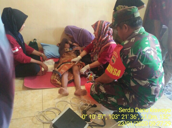 Babinsa Koramil 05/Gas Teluk pinang Serda Danu Kiswoyo mendampingi anak anak sunatan massal di UPT Puskesmas Teluk pinang, Kamis,23/01/2020.