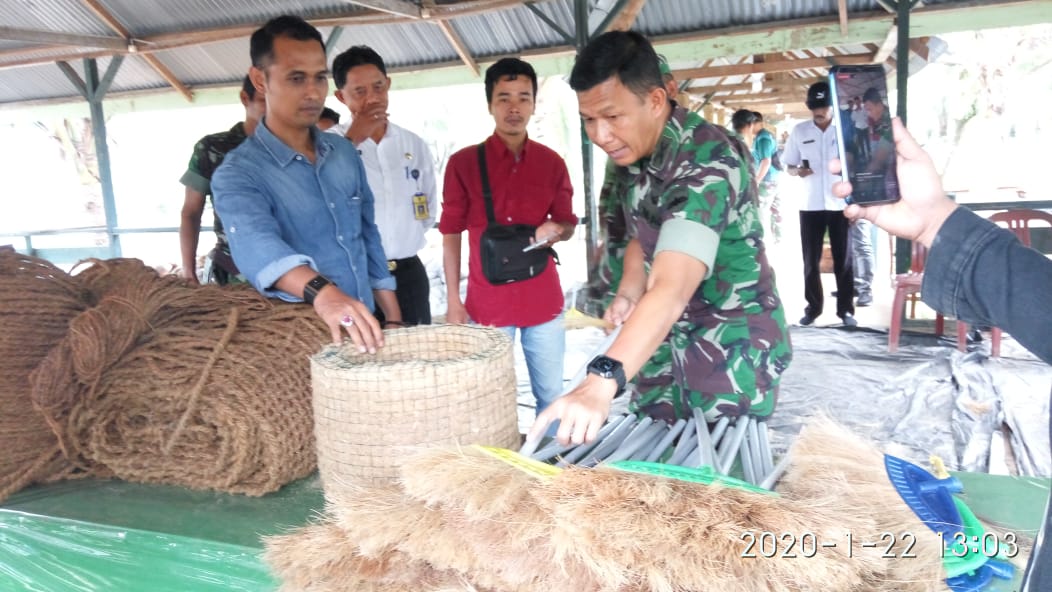 | Letkol Inf. Imir Faishal perlihatkan Hasil olahan limbah kelapa melalui Pilot Project |