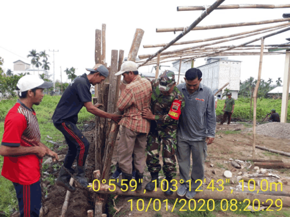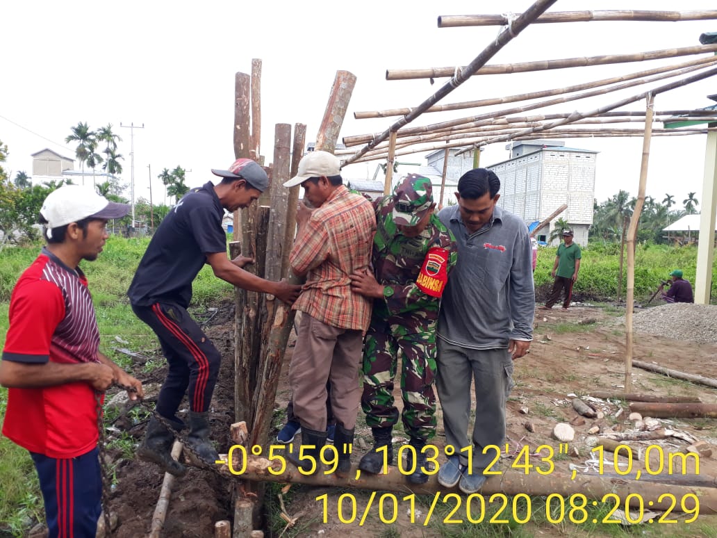 seribuparitnews.com GAUNG - Di Hari Jumat seperti biasa bagi Bintara Pembina Desa Belantak Raya Serka Sasmito Koramil 05/ Gaung Anak Serka selain melaksanakan Jumat Bersih, Juga bersama masyarakat melaksanakan Pembangunan Pagar Surau Istiqomah Desa Belantak Raya Jumat (10/01/2020).