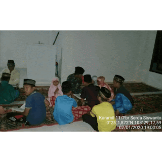 Kegiatan Pendampingan mengaji  hari  ini kamis ( 02/01/2020) Pukul 19:00 Wib baqda magrib dilaksanakan Bersama Ustad Soleh (65) Bertempat di Mesjid Al Hidayah Blok G Desa Pulau Burung Kecamatan Pulau Burung