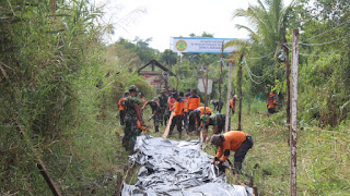Melalui kegiatan Karya Bhakti Kodim 0314/INHIL dan Milad ke 3 BPBD kegiatan tersebut di laksanakan penimbunan jalan dengan pasir menuju ke Ponpes sepanjang 150 Meter.