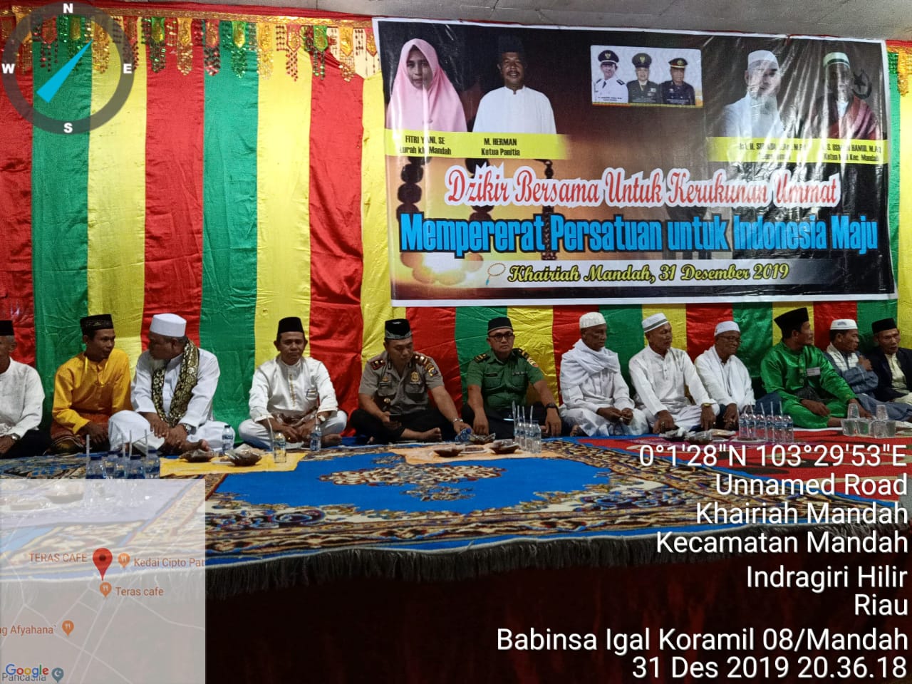 Bersama Kegiatan Dzikir tersebut di Gesa Oleh Pemerintah Kecamatan Mandah dengan tujuan Untu kerukunan Ummat Dengan Tema MempereratPersatuan Untuk Indonesia Maju.