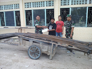 seribuparitnews.com TEMBILAHAN, - Dandim 0314/Inhil Letkol Inf Imir Faishal melalui Pasi Ter Kodim 0314/Inhil Kapten Inf A. Siregar menyerahkan bantuan berupa material besi 10 sebanyak 100 batang kepada pengurus pembangunan mesjid di Jalan Saptamarga, Kamis (19/12/2019).
