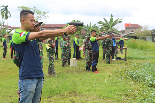 seribuparitnews.com TEMBILAHAN, - Kepala Bea dan Cukai Kabupaten Indragiri Hilir (Inhil) bersama 31 orang anggotanya melaksanakan latihan menembak tepat senapan dengan jarak 100 meter dan menembak pistol dengan jarak 20 meter  di lapangan tembak Makodim 0314/Inhil, Rabu (11/12/19).