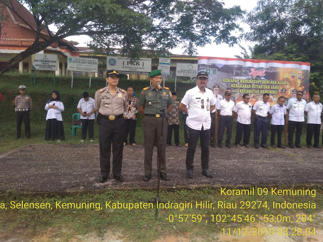 seribuparitnews.com KEMUNING, - Bertempat di halaman Kantor Camat Kemuning, telah dilaksanakan Giat Apel Kesiapan Hadapi Pencegahan Bencana Alam Karhutla Tahun 2019/2020, Kecamatan Kemuning, Indragiri Hilir, Rabu (11/12/19) pukul 08:00 WIB.
