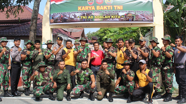 seribuparitnews.com TEMBILAHAN,- Kodim 0314 Inhil Laksanakan "bakti TNI" dalam bentuk kegiatan fisik yaitu gotong royong (Goro) dalam rangka menyambut Hari Juang TNI - AD, 15 Desember 2019, "Jum'at (06/12/2019).