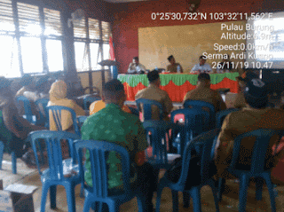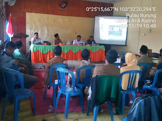 Acara dihadiri Camat Pulau Burung /Di wakili Sekcam, Kapolsek Pulau Burung yang diwakili oleh Ps. Kanit Binmas Pulau Burung Aiptu Sandi. N, Danramil Pulau Burung yang diwakili oleh Serma Ardi Kusno, Bapak Mahyudin, Ketua Tim Inovasi Mahzudid dan Peserta Rapat.