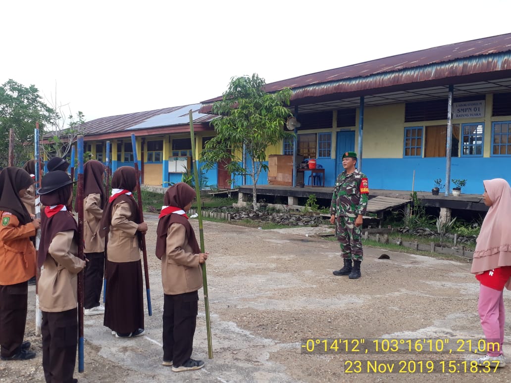 seribuparitnews.com BATANGTUAKA,- Babinsa Koramil 12/BTK Kodim 0314/Inhil Serda Januar Effendi melaksanakan kegiatan pembinaan pramuka di SMPN SMP N 001 Batang Tuaka, Kecamatan Batang Tuaka, Inhil, Minggu (24/11/2019).