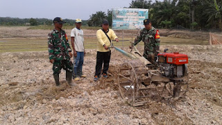 Dalam kesempatan itu para babinsa dan pemilik lahan bersama melakukan pengolahan lahan yang sangat keras. Karena sudah lama tidak turun hujan, dan kebetulan lahan juga lama tidak diolah.
