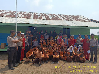 Lebih lanjut Danramil Koramil 12/Batang Tuaka Arh Uwin Suharto menyampaikan ini bentuk perhatian dari Polri atas SD 021 Marjinal Panglima Hitam, Parit 20 Desa Kuala Seibatu.